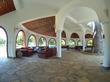Elegante edificio principale costruito attorno ad un grande baobab, in stile arabo/coloniale caratterizzato da ampie arcate e 1° piano panoramico, con una stupenda vista mare. Qui si trova la reception, Boutique, Bar e la zona ristorante. Le  2 cucine, moderna e tradizionale, con forno a legna per pizza, propongono cucina Internazionale, Italiana e Etnica